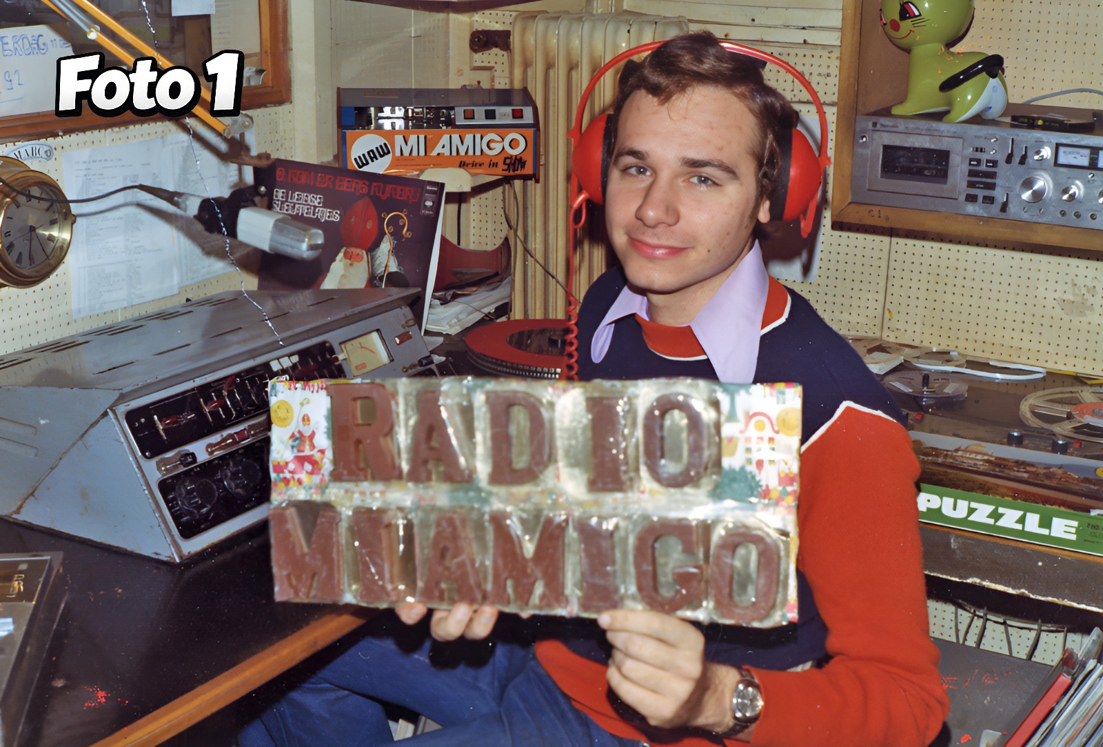 De acht genummerde foto’s vind je op de Facebookpagina (blauw) en Facebookgroep (geel) van Mi Amigo Radio. Zo kun je ze tijdens de uitzending van Baken 16 bekijken en tegelijkertijd luisteren naar wat Marc, Johan en Bart erover te vertellen hebben.