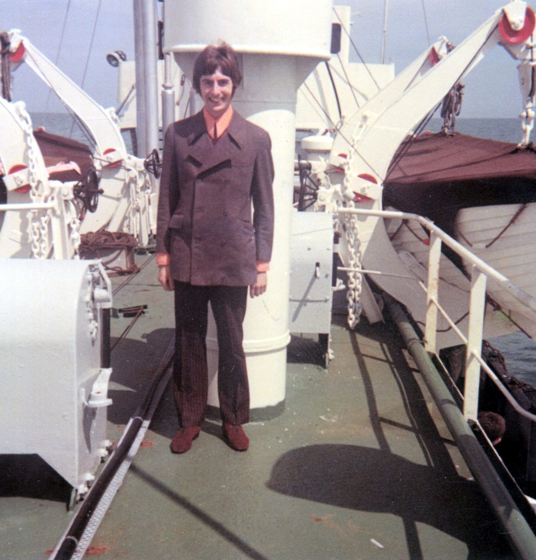 I went to Holland, met them at the Grand Hotel at Scheveningen. It was a misty day. They were talking about the ship. “Meet us by the quay in the morning.” Met them in the morning, Mebo I was there, bigger than the Mi Amigo. We sailed out. It was still a misty day. We sailed out. Passed the Radio Veronica ship. Passed the REM Island, which is still there. Then out of the mist came this psychedelic painted ship with this aerial on top. I said “Oh, you silly sods have actually done it. Okay, when do I start?” Need to tell the discotheques that I was working that I was not coming back. I went back to England. I recorded some test transmissions and went home for a few days. The new adventure started. I used to get phone calls. My voice was on there. I got calls “We heard you on Radio Nordsee.” “No, I’m not going through that again.” I went back and that was it.